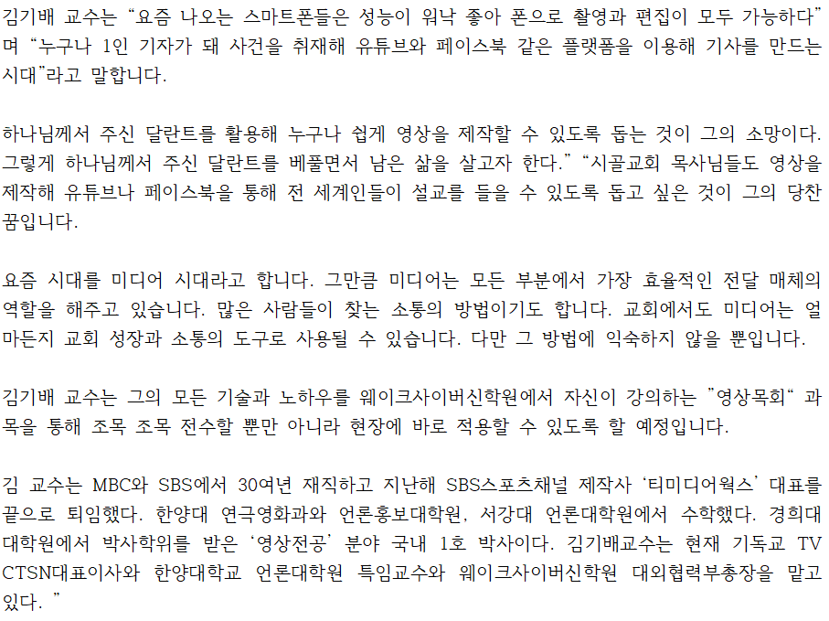 김기배 교수의 ''영상목회''